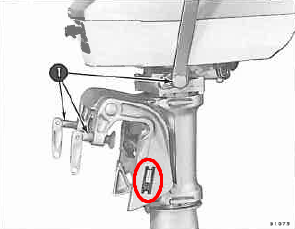 Skylten är placerad på motorns upphängningsbygel och kan vara i form av en nitat plåtskylt eller