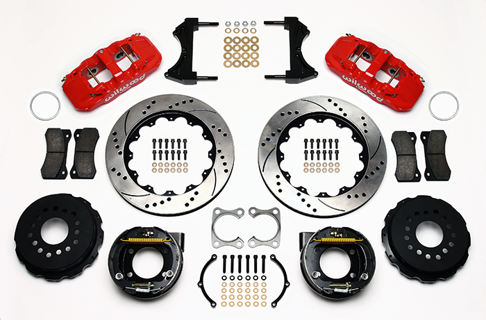 AERO4 Bak med P-Broms, 14.00", Borrad Bromsskiva - Röd Big Ford Old Style 2.36" Offset