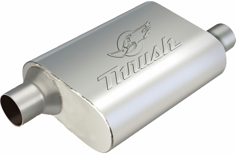 Totallängd=19" Kroppslängd=13" Anslutning in och ut =2 1/4" Center/Offset Oval 9 1/2" x 4". Thrush Turbo - Svetsade gavlar