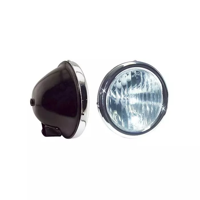 1926-27 Model T Ford Headlights - Complete Assemblies - Gloss BlackBuckets With Nickel Rims For Bar Mounting