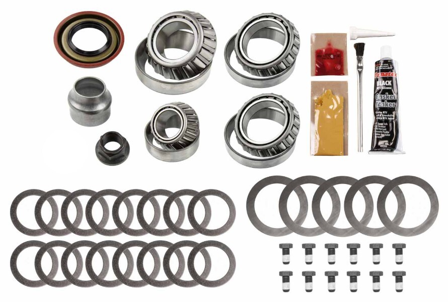 Ford 9,75" 12-Bult Late Style Case - From 2011 For Ford 9.75" (12 Bolt); Master Bearing Kit Includes Koyo Tapered Bearings (Carrier, Front and Rear Pinion, Pilot where applicable), Brush, Cover Gasket (or RTV), Crush Sleeve (or Preload Shim Pack), Marking Compound, Pinion Nut, Pinion Seal, and Thread Locking Compound