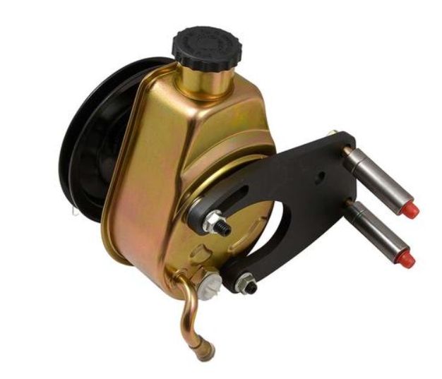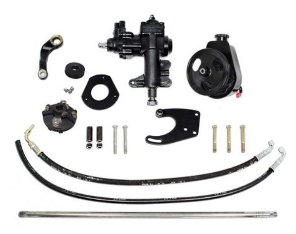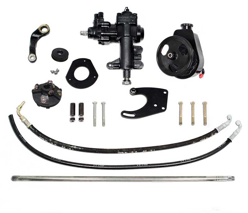 Enklare än original Mustang servostyrning, ingen dyr och komplicerad styrventil, färre rörliga delar, hälften så många slangar. En prisvärd, enkel och effektiv lösning för styrningen i din Mustang från 1965 till tidiga 67:or som konverterar manuell styrning till servo eller ersätter slitna originalkomponenter med ett modernt system. Den integrerade styrsnäckan eliminerar styrventilen och läckande styrarmar med stort spel. Den nya styrsnäckan har en utväxling på 14:1 mot originalets 16:1 vilket gör att din Mustang känns tajtare och ger dig mer kontroll. Saginaw-pumpen är mycket tystare än Fords originalpump och ger högre tryck för bättre funktion vid låga hastigheter. Pumpen är renoverad, alla andra delar är nya. Följande komponenter ingår: Styrsnäcka med monteringsbultar Servopump med remskiva, fästen och bultar Slangar Styrstag Stödplatta för insidan av torpedväggen Kardanknut Styrarm Remskiva för vevaxel och drivrem säljs separat. Den här satsen passar: Ford Mustang 1965 till tidig 1967 289 (ej HiPo) med eller utan manuell styrning, vattenpump av gjutjärn, automatlåda, med eller utan luftkonditionering. Obs! Tidiga 67:or har en solid rattstång i ett stycke. Skyddsröret för rattstången måste kapas och man byter till det medföljande rattröret. Sena 67:or har en filtskiva nära botten av rattstången. För sena 67:or med filtskiva ska styrservosatserna 5652 eller 5653 användas.
