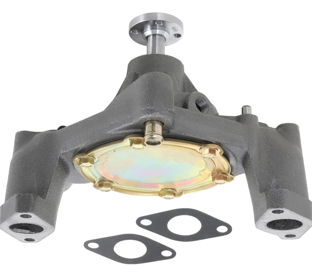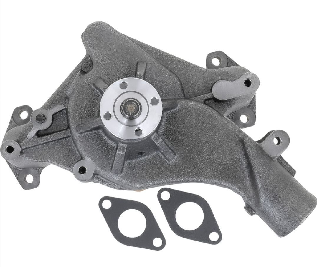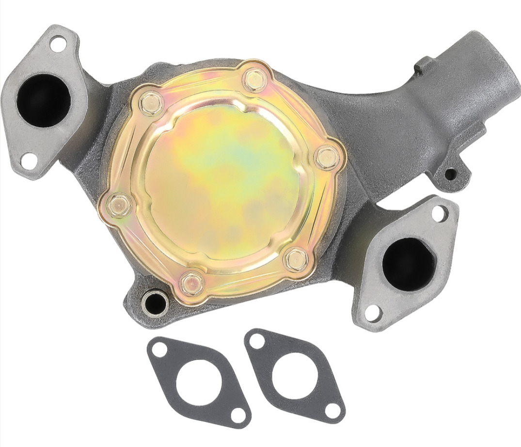 Fabriksny vattenpump. Ford/Edsel 332, 352, 361 V8 1958-60. Bypass slang anslutning 5/8" dia (16mm). Använd slang art: AFW9201-085-070 om gamla by-pass slangen är 7/8" diameter.